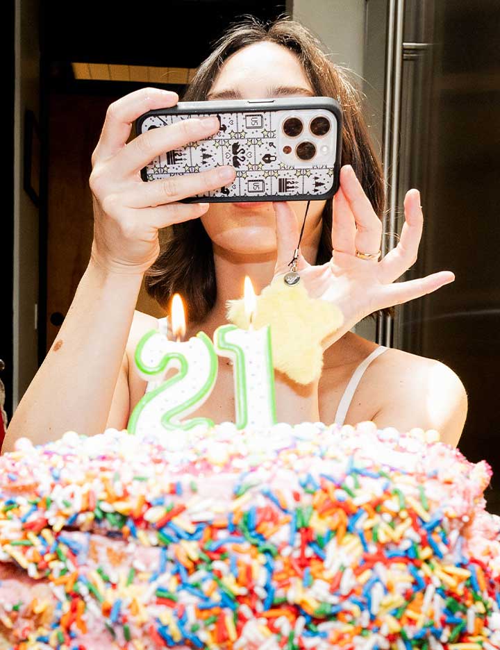 Designed in collaboration with musician Gracie Abrams. this limited edition Gracie Abrams iPhone case features cross-stitch details. including her signature star and her adorable dog. Weenie. With its vintage-inspired design. you can carry a piece of Gracie’s world with you wherever you go!